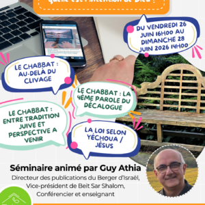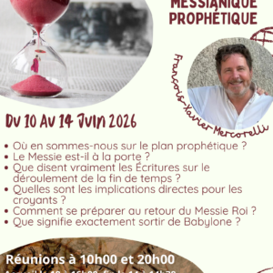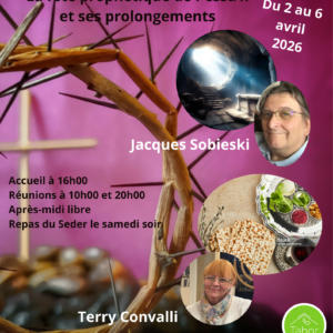 Séminaire de Pessa’h (Pâque et Pâques), la fête prophétique de Pessa’h et ses prolongements – Jacques Sobieski et Terry Convalli Pessa’h est la fête prophétique la plus importante de la ... 02 - 06 Avr 16 h 00 min - 16 h 00 min