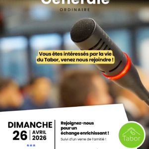 Assemblée générale de l’association Tabor L'assemblée générale ordinaire est une réunion qui rassemble les membres ... 26 Avr 14 h 30 min - 18 h 00 min