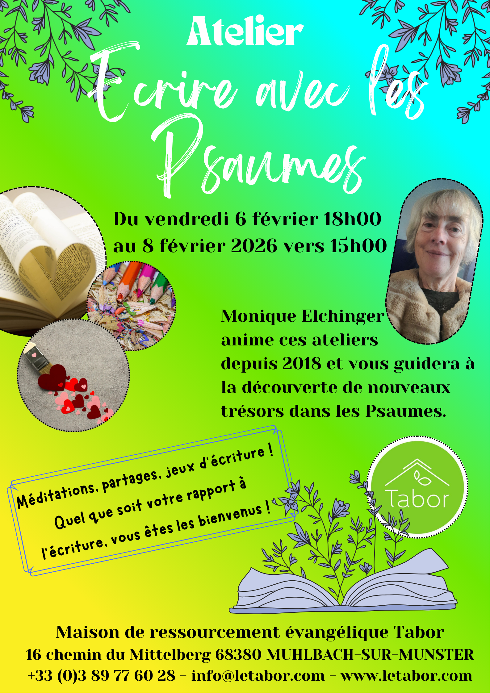 Inspirée par le Saint-Esprit, elle propose les ateliers “Ecrire avec les Psaumes” depuis 2018.